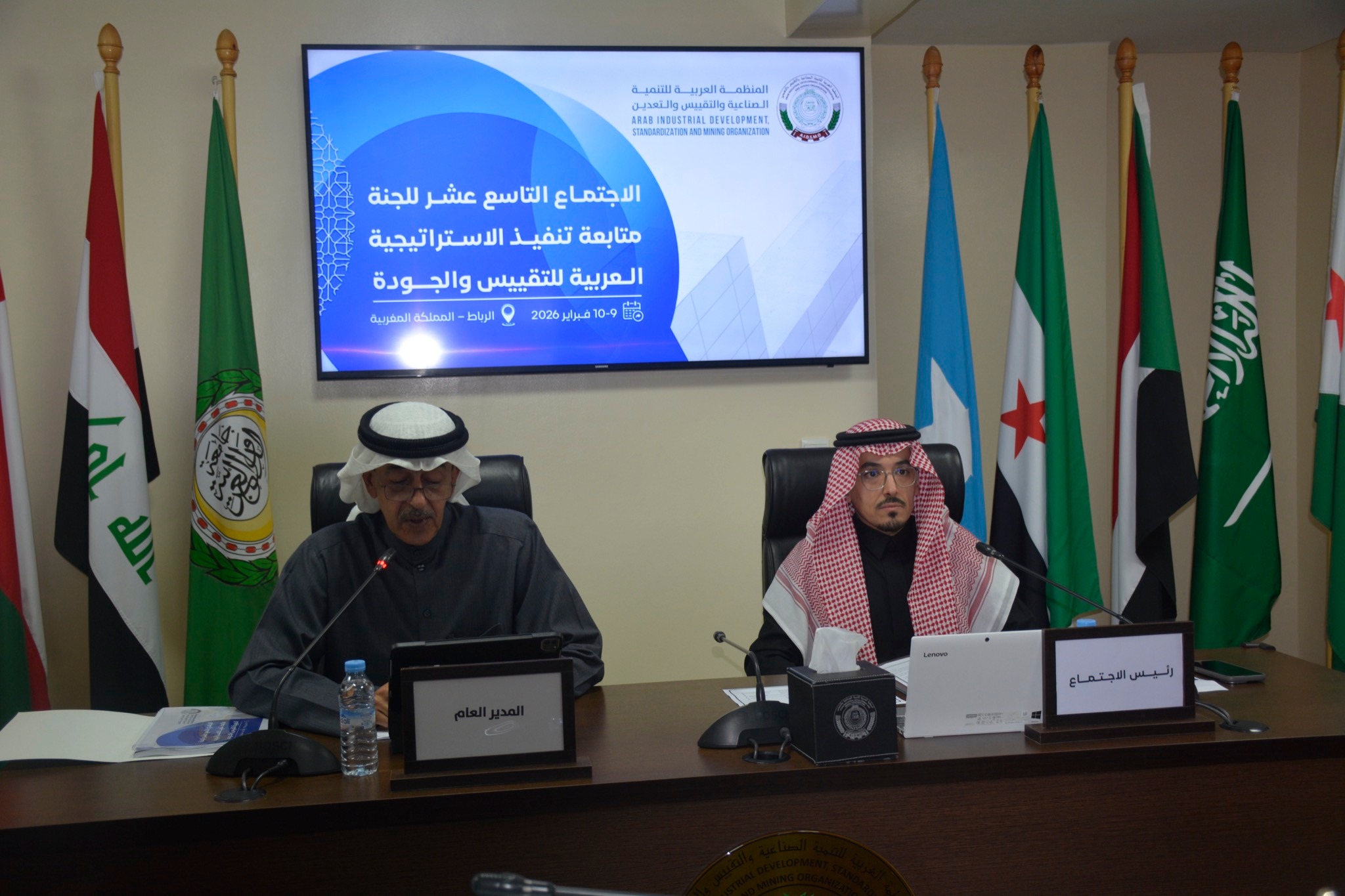 انطلقت اليوم الاثنين 9 فبراير 2026 في الرباط بالمملكة المغربية، حضوريا وعبر تقنية الاتصال عن بعد، أعمال الاجتماع التاسع عشر للجنة متابعة تنفيذ الاستراتيجية العربية للتقييس والجودة الذي تعقده المنظمة العربية للتنمية الصناعية والتقييس والتعدين (الإيدسمو) على مدى يومين ( 4-5 فبراير 2025 )، برئاسة سعادة الأستاذ هيثم بن عادل أبو حيمد / مدير عام التميز المؤسسي والحوكمة بالهيئة السعودية للمواصفات والمقاييس والجودة ورئيس لجنة متابعة تنفيذ الإستراتيجية العربية للتقييس والجودة.