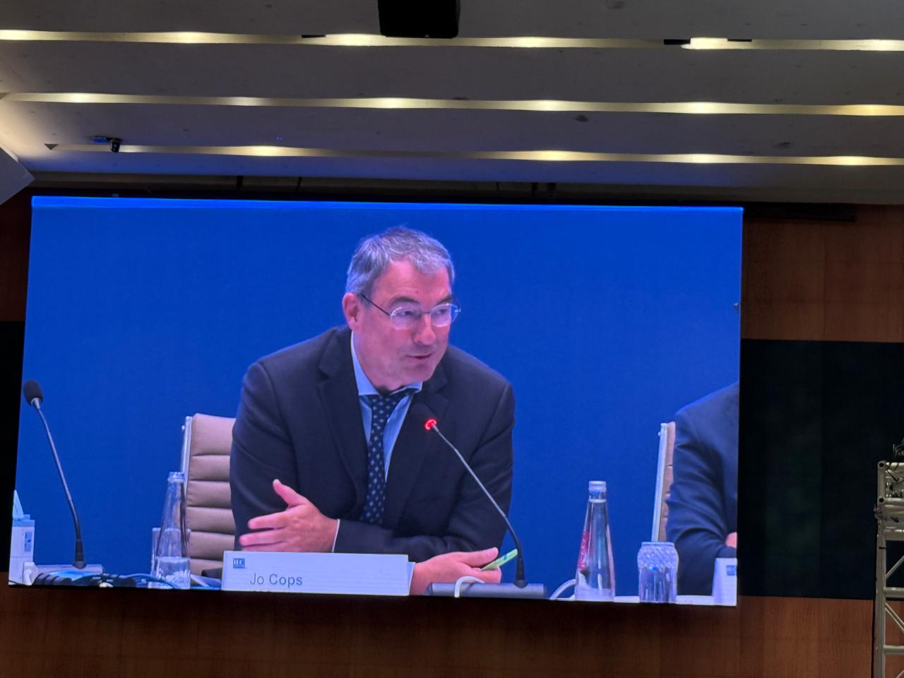 وكلمة للسيد جو كوبس، رئيس اللجنة الدولية الكهروتقنية (IEC)، أكد فيها التزام اللجنة بتوفير المواصفات الدولية لمواجهة التحديات البيئية، مشددًا على أن الاستدامة ضرورة، وأن التعاون الدولي يمثل مفتاح بناء مستقبل كهربائي مستدام للجميع.