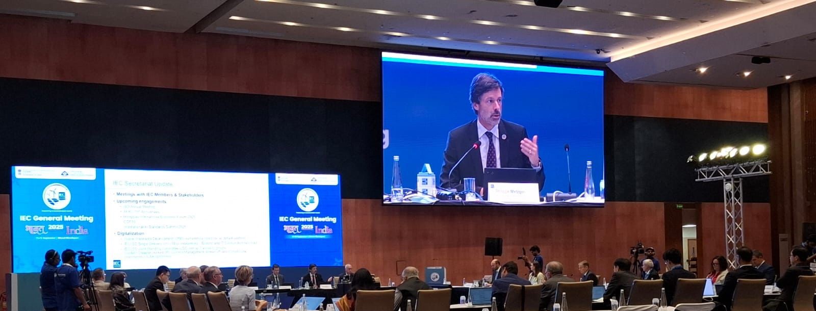 وألقى السيد برامود كومار تيواري، المدير العام لمكتب المواصفات الهندية (BIS)، كلمة عبّر فيها عن سعادته باستضافة الاجتماع السنوي للجنة الكهروتقنية الدولية (IEC) في نيودلهي، مشيدًا بأهمية التعاون المشترك للمضي قدمًا نحو مستقبل مستدام.